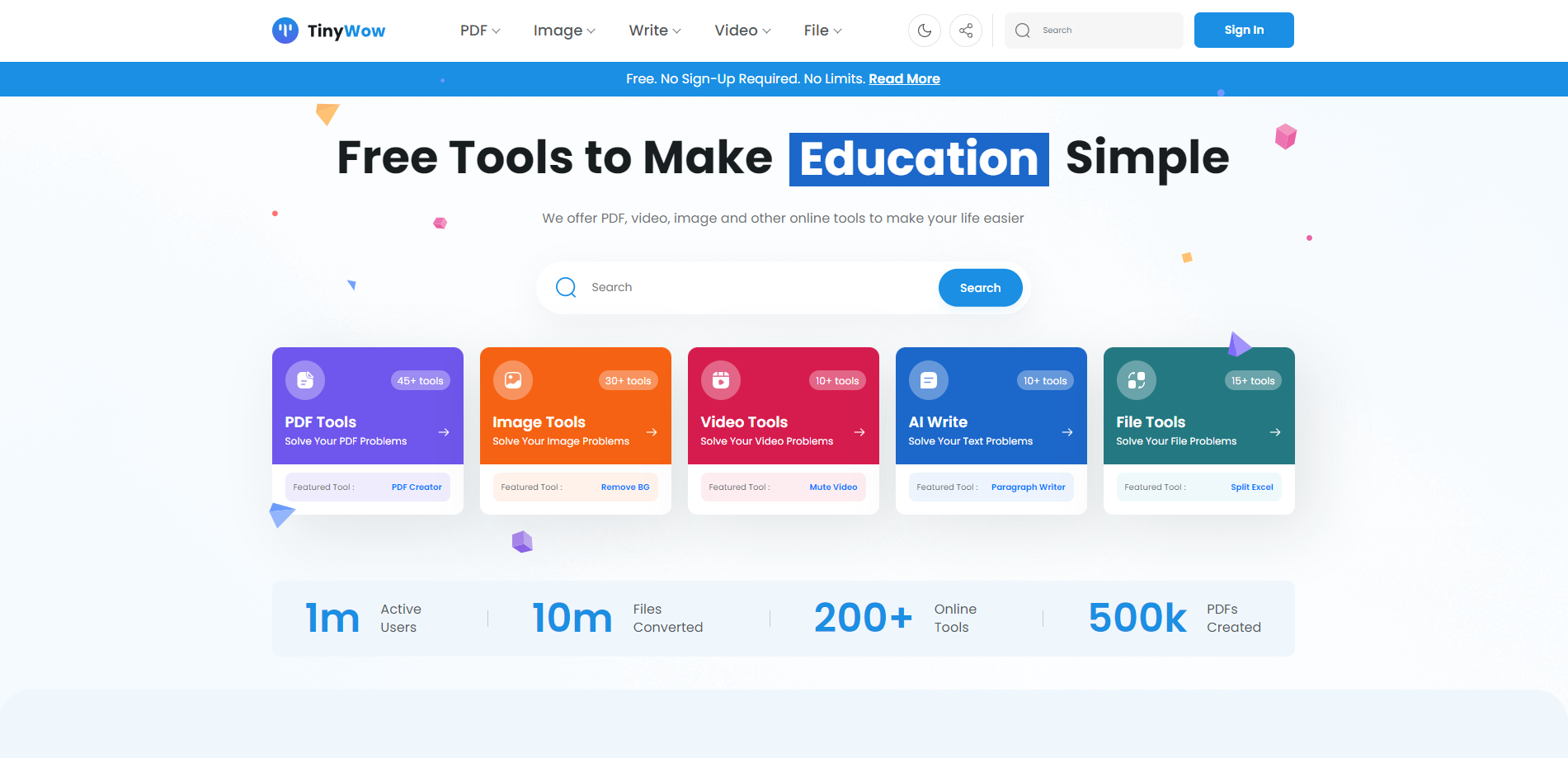 این سایت شامل ابزاری برای حل دسته ای از مشکلات شماست. TinyWOW، با تبدیل آنلاین و رایگان فایل های PDF و ارائه سایر ابزارهای مفید به شما در رسیدن به اهداف مختلف کمک می کند. بهترین و جالب ترین بخش این سایت حذف خودکار همه فایلها پس از ۱ ساعت می باشد؛ از جمله فایلهای پردازش شده و پردازش نشده.